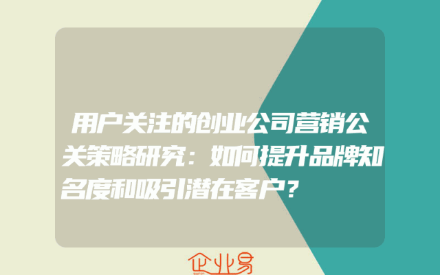 - 用户关注的创业公司营销公关策略研究:如何提升品牌知名度和吸引潜在客户?