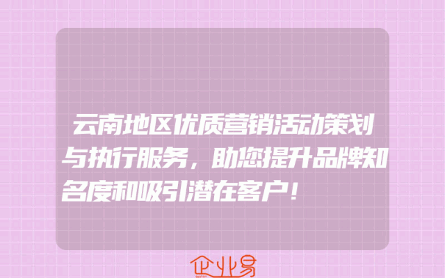 - 云南地区优质营销活动策划与执行服务,助您提升品牌知名度和吸引潜在客户!