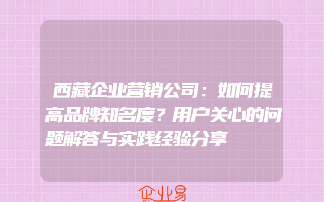 - 西藏企业营销公司:如何提高品牌知名度?用户关心的问题解答与实践经验分享