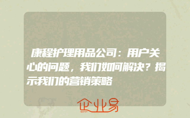 - 康程护理用品公司:用户关心的问题,我们如何解决?揭示我们的营销策略
