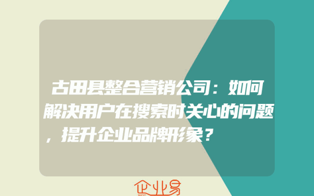 - 古田县整合营销公司:如何解决用户在搜索时关心的问题,提升企业品牌形象?