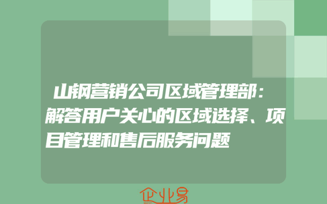 - 山钢营销公司区域管理部:解答用户关心的区域选择、项目管理和售后服务问题