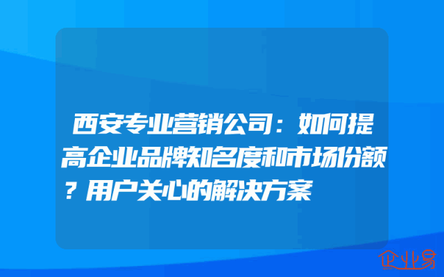 - 西安专业营销公司:如何提高企业品牌知名度和市场份额?用户关心的解决方案