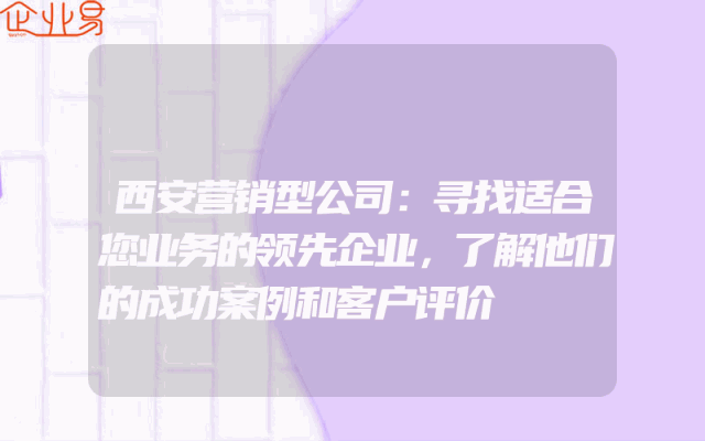- 西安营销型公司:寻找适合您业务的领先企业,了解他们的成功案例和客户评价