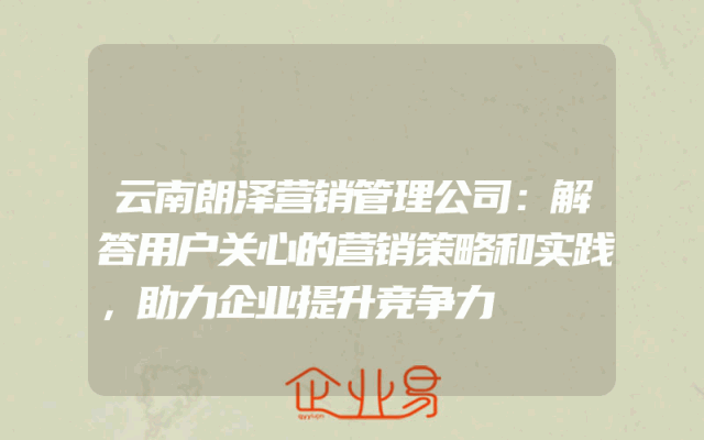 - 云南朗泽营销管理公司:解答用户关心的营销策略和实践,助力企业提升竞争力