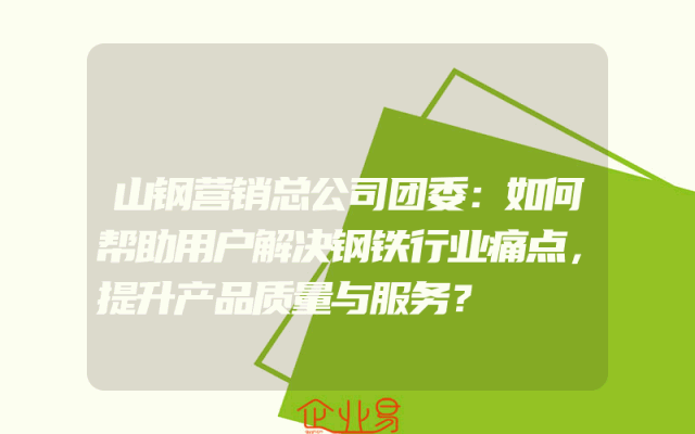 - 山钢营销总公司团委:如何帮助用户解决钢铁行业痛点,提升产品质量与服务?在当前的钢铁行业中,存在着许多痛点问题,如产品质量不稳定、服务水平不高等。为了帮助用户解决这些问题,提升产品质量与服务,山钢营销总公司团委积极探索解决方案。本文将从以下几