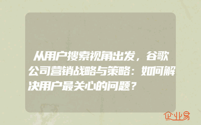 - 从用户搜索视角出发,谷歌公司营销战略与策略:如何解决用户最关心的问题?