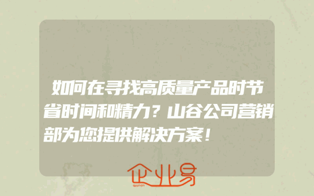 - 如何在寻找高质量产品时节省时间和精力?山谷公司营销部为您提供解决方案!