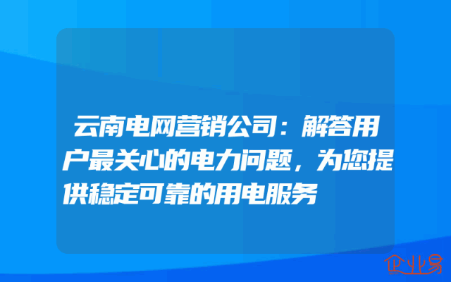 - 云南电网营销公司:解答用户最关心的电力问题,为您提供稳定可靠的用电服务