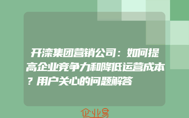 - 开滦集团营销公司:如何提高企业竞争力和降低运营成本?用户关心的问题解答
