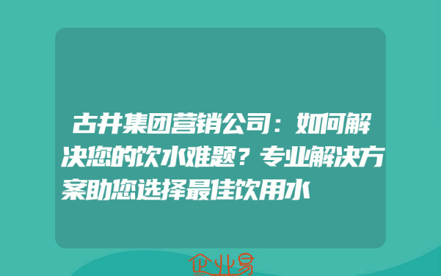 - 古井集团营销公司:如何解决您的饮水难题?专业解决方案助您选择最佳饮用水
