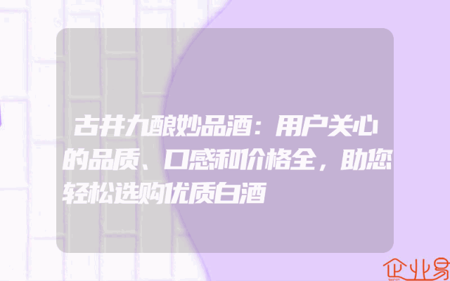 - 古井九酿妙品酒:用户关心的品质、口感和价格全,助您轻松选购优质白酒