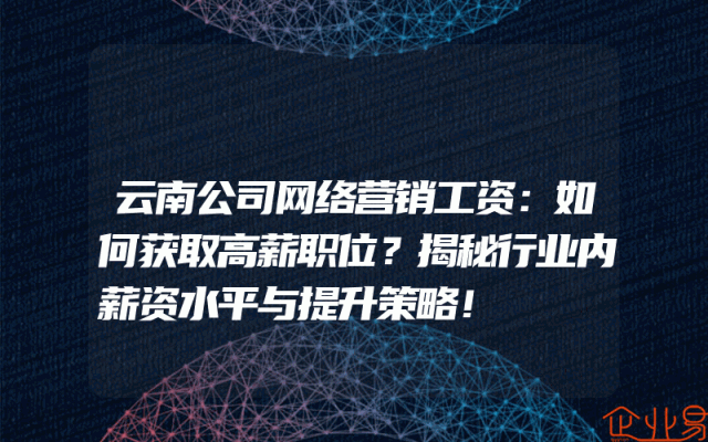 - 云南公司网络营销工资:如何获取高薪职位?揭秘行业内薪资水平与提升策略!