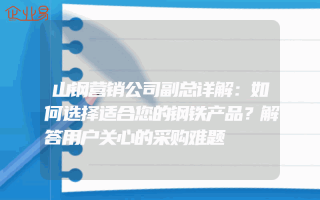 - 山钢营销公司副总详解:如何选择适合您的钢铁产品?解答用户关心的采购难题在当今市场竞争激烈的环境下,企业采购面临着诸多难题。作为一家专业的钢铁营销公司,山钢营销公司一直致力于为客户提供高质量的产品和服务。本文将由山钢营销公司副总为您详细解析如