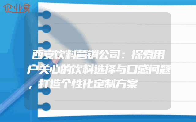 - 西安饮料营销公司:探索用户关心的饮料选择与口感问题,打造个性化定制方案