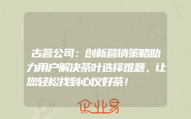- 古茗公司:创新营销策略助力用户解决茶叶选择难题,让您轻松找到心仪好茶!