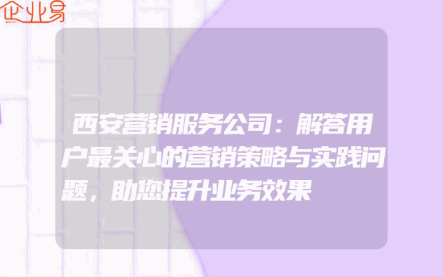 - 西安营销服务公司:解答用户最关心的营销策略与实践问题,助您提升业务效果