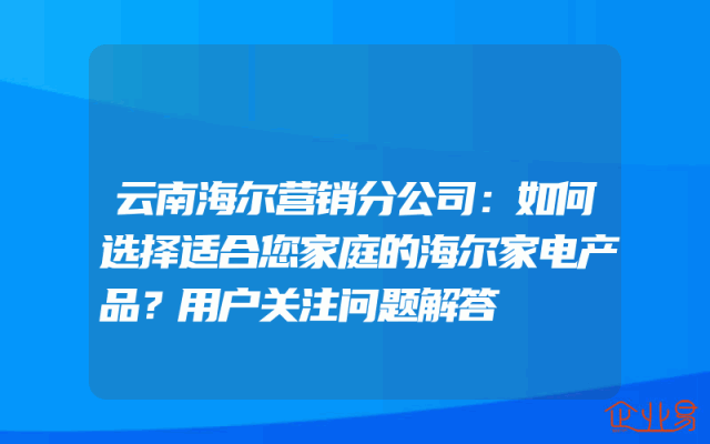 - 云南海尔营销分公司:如何选择适合您家庭的海尔家电产品?用户关注问题解答