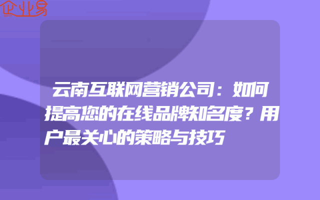 - 云南互联网营销公司:如何提高您的在线品牌知名度?用户最关心的策略与技巧