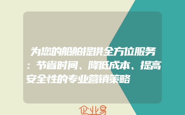 - 为您的船舶提供全方位服务:节省时间、降低成本、提高安全性的专业营销策略