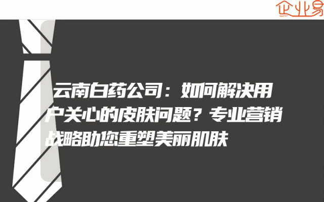 - 云南白药公司:如何解决用户关心的皮肤问题?专业营销战略助您重塑美丽肌肤