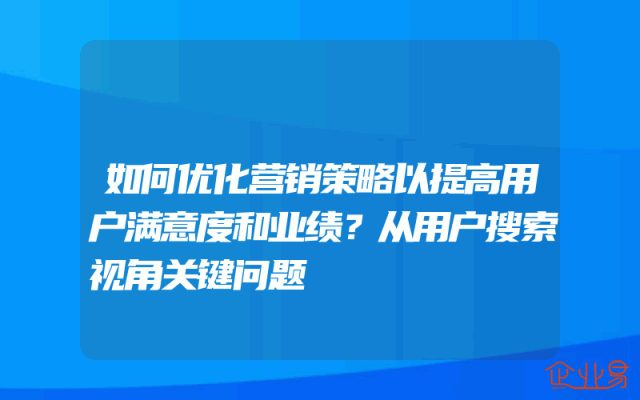 - 如何优化营销策略以提高用户满意度和业绩?从用户搜索视角关键问题