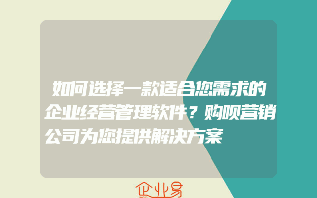- 如何选择一款适合您需求的企业经营管理软件?购呗营销公司为您提供解决方案