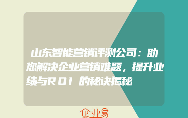 - 山东智能营销评测公司:助您解决企业营销难题,提升业绩与ROI的秘诀揭秘