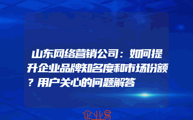 - 山东网络营销公司:如何提升企业品牌知名度和市场份额?用户关心的问题解答