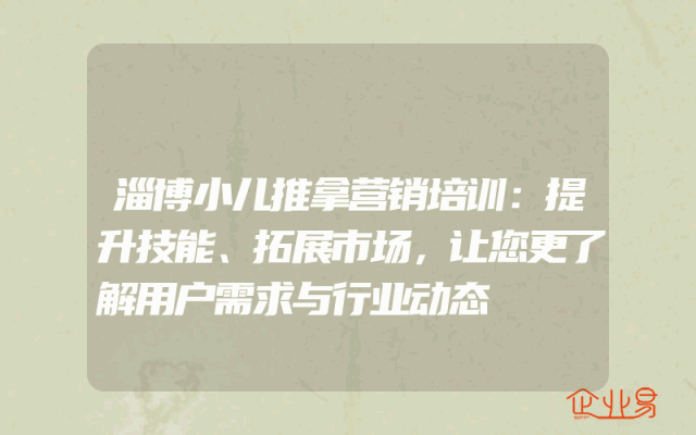 - 淄博小儿推拿营销培训:提升技能、拓展市场,让您更了解用户需求与行业动态