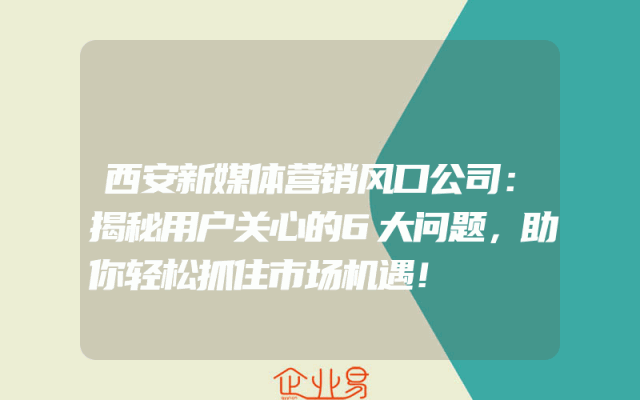 - 西安新媒体营销风口公司:揭秘用户关心的6大问题,助你轻松抓住市场机遇!