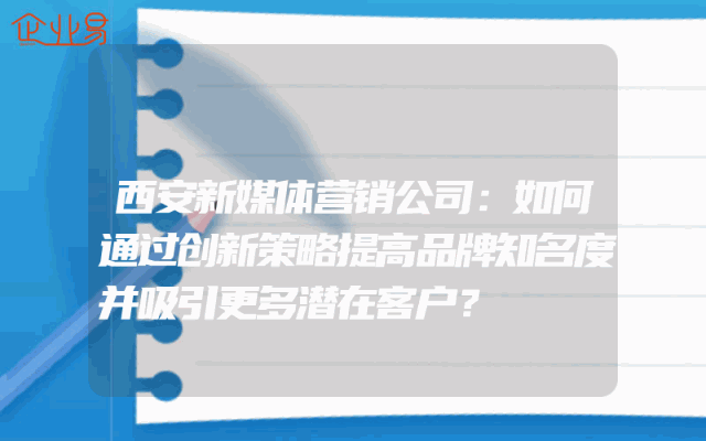 - 西安新媒体营销公司:如何通过创新策略提高品牌知名度并吸引更多潜在客户?