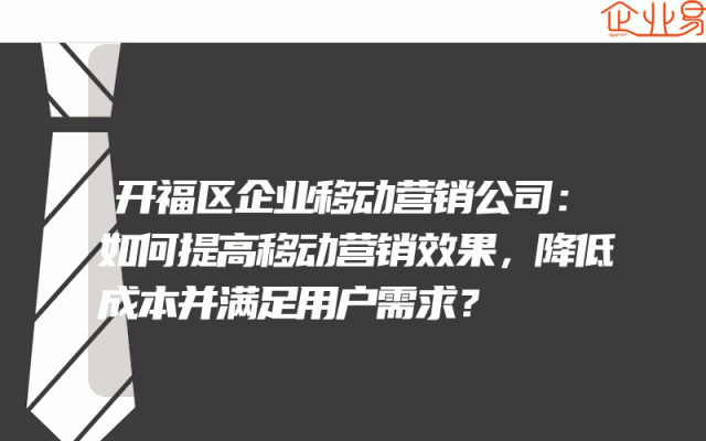 - 开福区企业移动营销公司:如何提高移动营销效果,降低成本并满足用户需求?