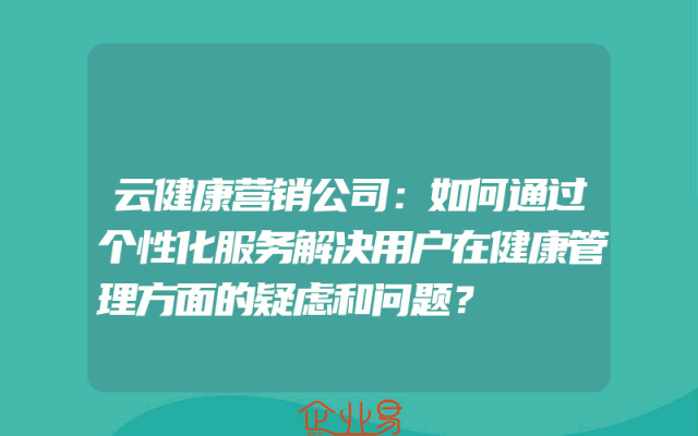 - 云健康营销公司:如何通过个性化服务解决用户在健康管理方面的疑虑和问题?