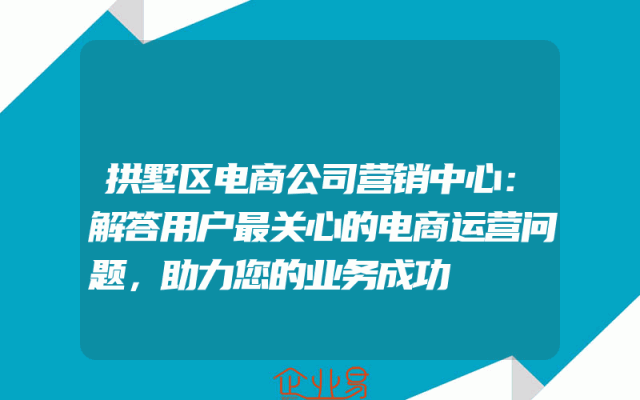 - 拱墅区电商公司营销中心:解答用户最关心的电商运营问题,助力您的业务成功