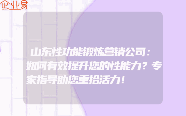 - 山东性功能锻炼营销公司:如何有效提升您的性能力?专家指导助您重拾活力!