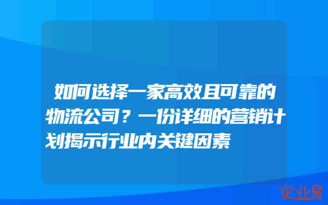 - 如何选择一家高效且可靠的物流公司?一份详细的营销计划揭示行业内关键因素