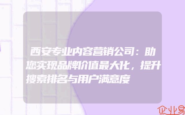 - 西安专业内容营销公司:助您实现品牌价值最大化,提升搜索排名与用户满意度