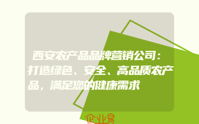 - 西安农产品品牌营销公司:打造绿色、安全、高品质农产品,满足您的健康需求