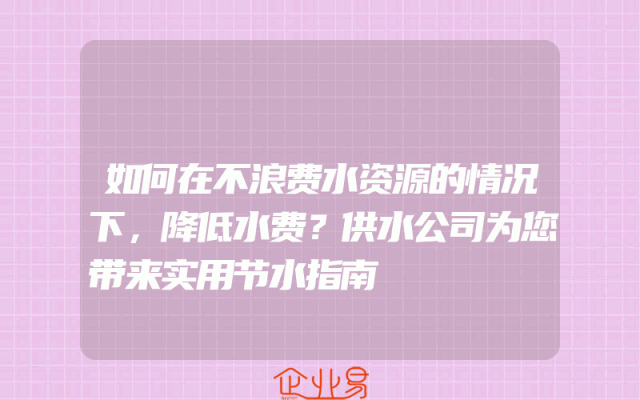 - 如何在不浪费水资源的情况下,降低水费?供水公司为您带来实用节水指南