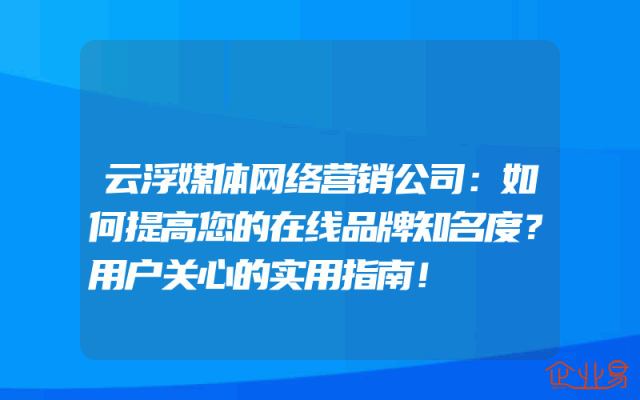 - 云浮媒体网络营销公司:如何提高您的在线品牌知名度?用户关心的实用指南!