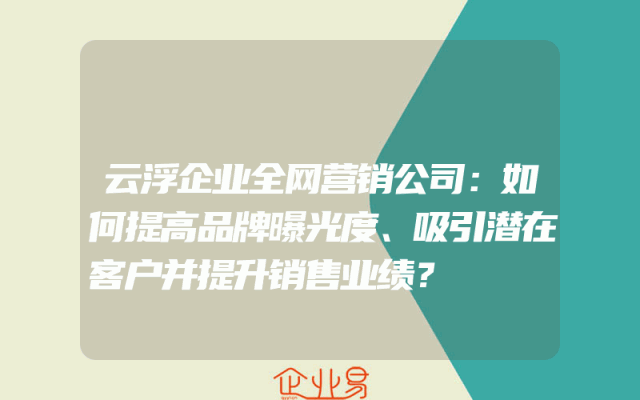- 云浮企业全网营销公司:如何提高品牌曝光度、吸引潜在客户并提升销售业绩?