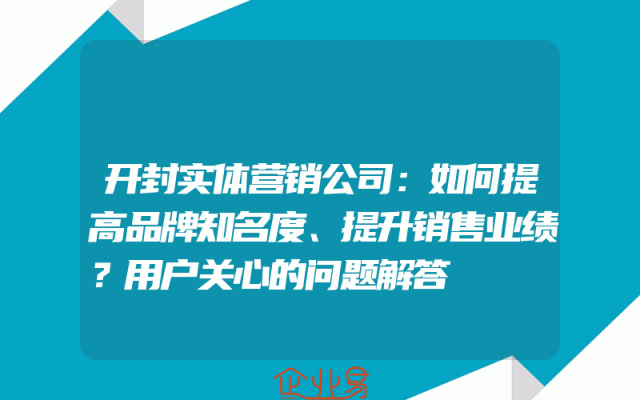 - 开封实体营销公司:如何提高品牌知名度、提升销售业绩?用户关心的问题解答