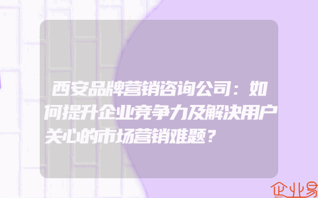 - 西安品牌营销咨询公司:如何提升企业竞争力及解决用户关心的市场营销难题?