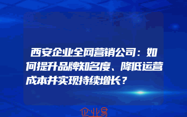 - 西安企业全网营销公司:如何提升品牌知名度、降低运营成本并实现持续增长?