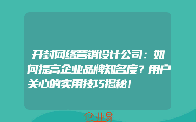 - 开封网络营销设计公司:如何提高企业品牌知名度?用户关心的实用技巧揭秘!