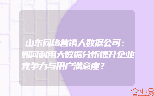 - 山东网络营销大数据公司:如何利用大数据分析提升企业竞争力与用户满意度?