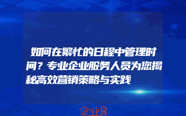 - 如何在繁忙的日程中管理时间?专业企业服务人员为您揭秘高效营销策略与实践