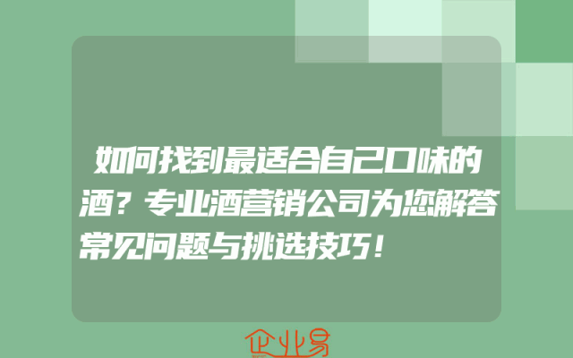 - 如何找到最适合自己口味的酒?专业酒营销公司为您解答常见问题与挑选技巧!