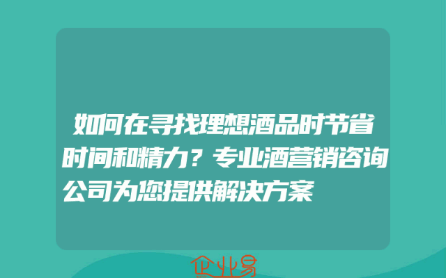 - 如何在寻找理想酒品时节省时间和精力?专业酒营销咨询公司为您提供解决方案